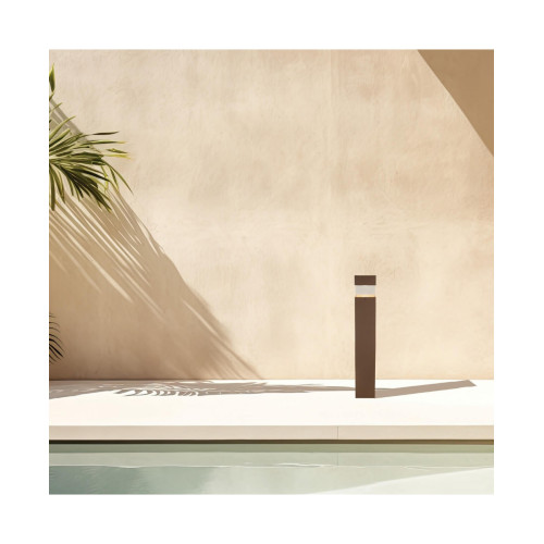 Stylish LED garden bollard lamp, made of dark brown colour rectangular aluminium body with polycarbonate diffuser and built-in 15W 3000K LED with a high degree of ingress protection: IP65. An original lamp that will give cozy light and modern style to the garden, park or alley in your home, hotel or restaurant.