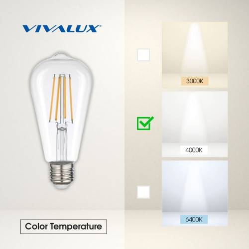 - Model: VIVALUX 005238 FLICK LED STF64 E27 8W 4000К