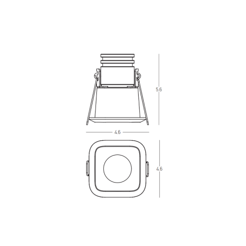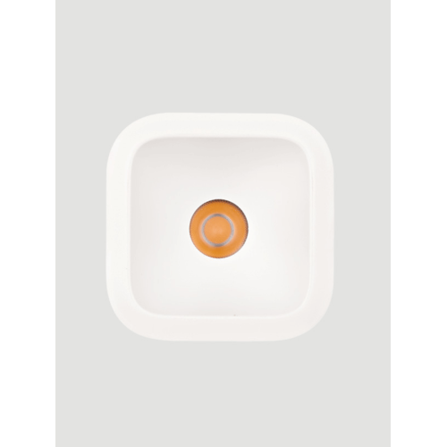 Modern LED recessed downlight lamp with a high degree of ingress protection: IP54, made of a matt white colour square aluminium body with a built-in 5W LED, 3000K with a beam angle of 36°. The body does not have a driver included. A quality lamp, suitable for lighting your bathroom, facade and wet room.