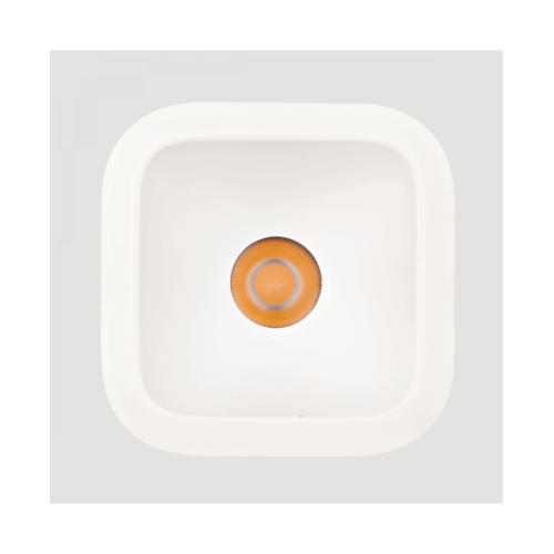 Modern LED recessed downlight lamp with a high degree of ingress protection: IP54, made of a matt white colour square aluminium body with a built-in 7W LED, 3000K with a beam angle of 36°. The body does not have a driver included. A quality lamp, suitable for lighting your bathroom, facade and wet room.
