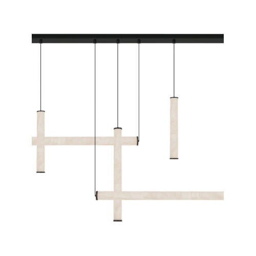 Stylish LED pendant lamp with an elegant design, made of a black colour aluminium base and a horizontally and vertically hanging cylindrical bodies of natural alabaster with a built-in 93W, 3000K LED. The body has a dimmable TRIAC driver. Modern solution for the original and comfortable lighting of your living room, dining room, bedroom, hotel and restaurant.