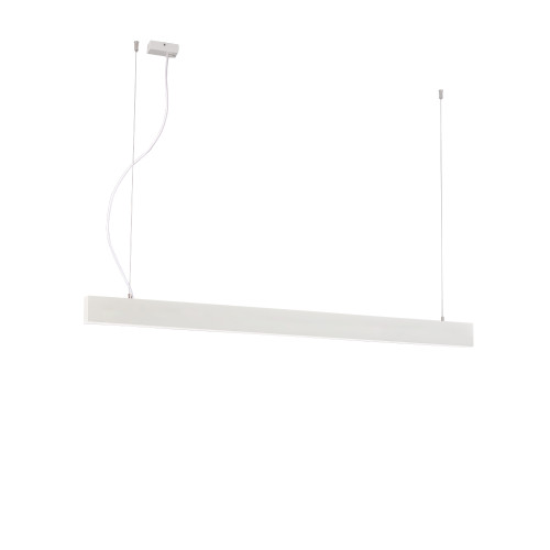 Stylish LED pendant lamp from the series Sasa, made of a white colour metal base with a hanging rectangular metal body and an opal plastic diffuser with a 110° light distribution angle and a built-in 37W, 3000K LED. A practical solution for the quality and modern lighting in your home, office, hotel or restaurant.