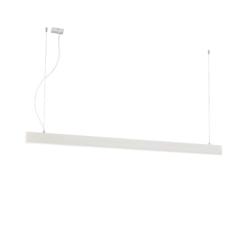 Stylish LED pendant lamp from the series Sasa, made of a white colour metal base with a hanging rectangular metal body and an opal plastic diffuser with a 110° light distribution angle and a built-in 59W, 3000K LED. A practical solution for the quality and modern lighting in your home, office, hotel or restaurant.