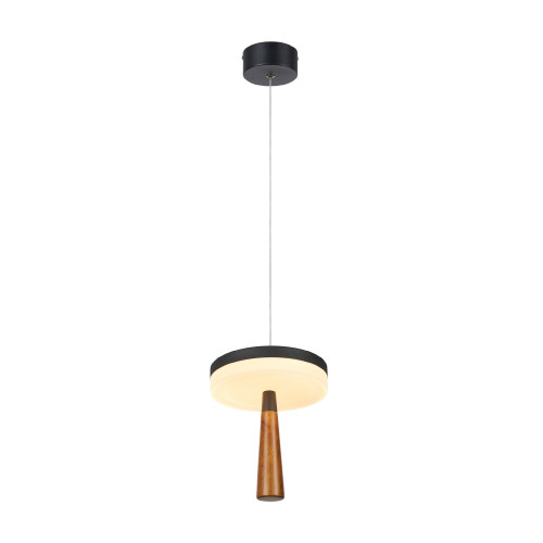 Stylish and modern led pendant lamp from series Asian, made of matt black colour metal base and round body with white opal plastic diffuser, with decorative wood element, with integrate 11W LED, 2700K - 3000K - 4000K, 715lm. Pendant lamp suitable for your living room, dining room, hotel and restaurant.