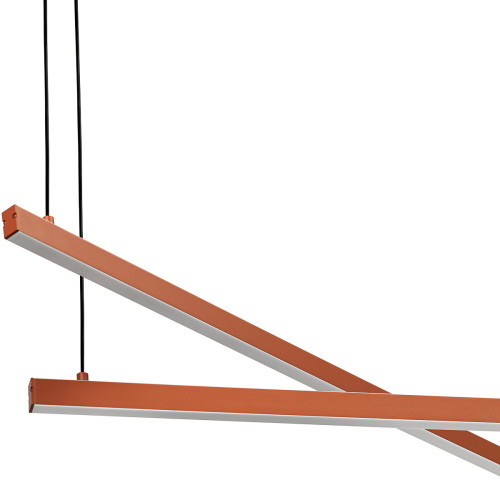 Modern LED pendant lamp from the series Miami, made of terracotta colour metal base and two hanging rectangular metal bodies with built-in 74W LED, 3000K and two-sided light distribution. Stylish proposal for comfortable lighting in your living room, dining room, bedroom, office, hotel and restaurant.