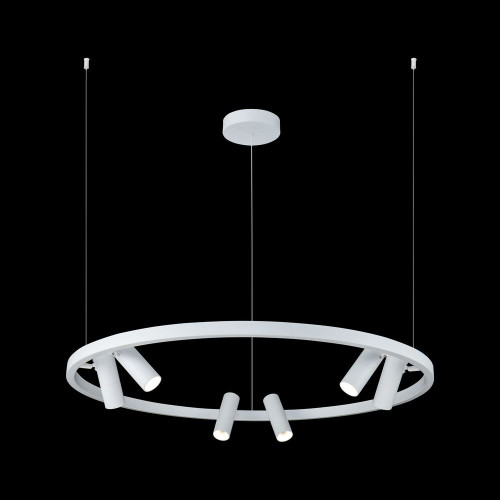 Attractive LED pendant lamp with modern design, made of round white metal base with six cylindrical metal heads, which can be adjusted horizontally at 340 ° and vertically at 90 ° and acrylic diffusers. A functional lamp that will fill with quality light and style your living room, dining room, office, hotel or restaurant.