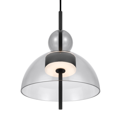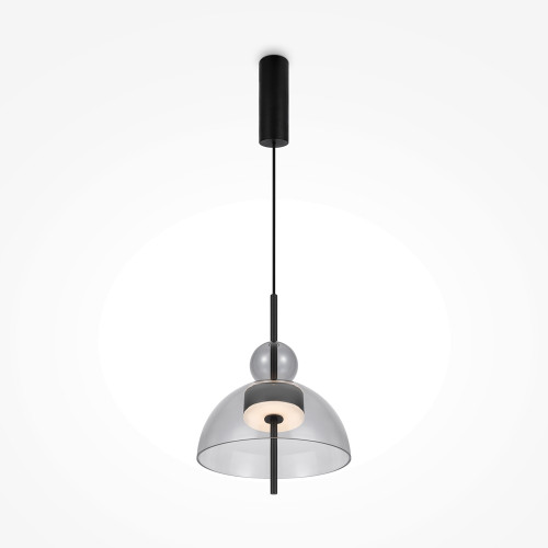 Contemporary LED pendant lamp from the series Bangkok, made of black colour metal base and grey colour glass diffuser in dome shape with built-in 12W 3000K LED. Stylish hanging lamp that will fill with a modern atmosphere and comfort your living room, dining room, bedroom, hotel and restaurant.