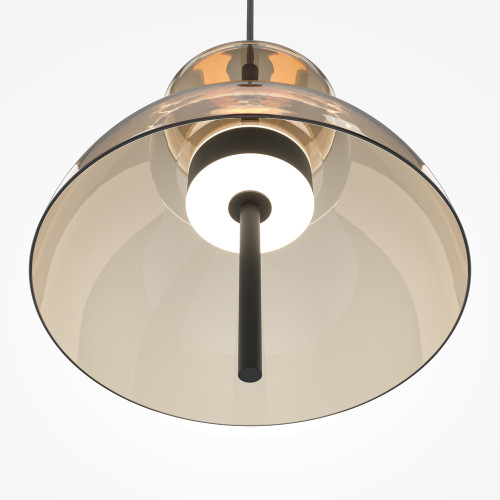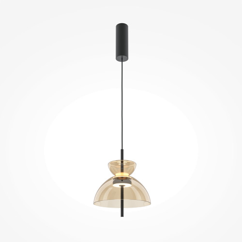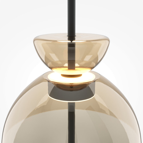 Contemporary LED pendant lamp from the series Bangkok, made of black colour metal base and cognac colour glass diffuser in dome shape with built-in 12W 3000K LED. Stylish hanging lamp that will fill with a modern atmosphere and comfort your living room, dining room, bedroom, hotel and restaurant.