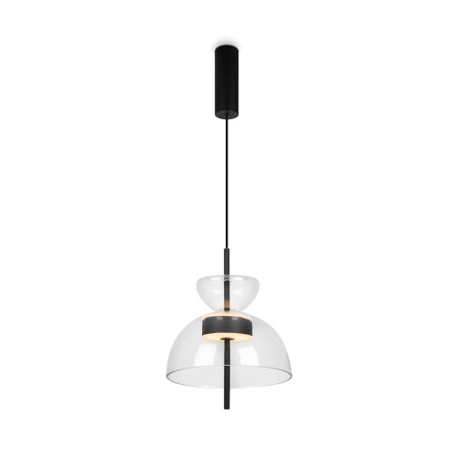 Contemporary LED pendant lamp from the series Bangkok, made of black colour metal base and transparent glass diffuser in dome shape with built-in 12W 3000K LED. Stylish hanging lamp that will fill with a modern atmosphere and comfort your living room, dining room, bedroom, hotel and restaurant.