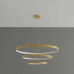 Stylish LED pendant lamp with a modern design from the series Rio, made of a gold colour round aluminium base with three hanging aluminium bodies in the shape of a ring with different diameters: 1100mm x 780mm x 550mm and plastic diffusers with a built-in 150W, 4000K LED and indirect light diffusion. An original lamp, suitable for comfortable lighting in your living room, dining room, office, hotel and restaurant.