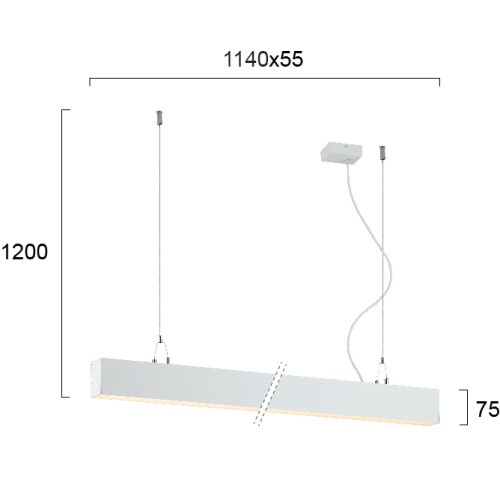 Dimensions: Height: 75-1200mm, Length: 1140mm, Width: 55mm