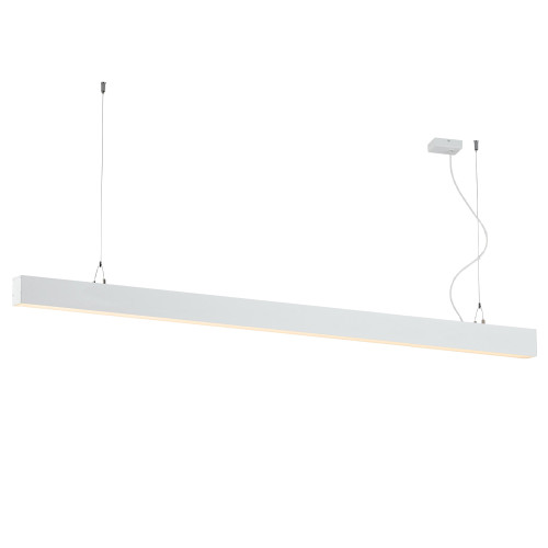 Modern LED pendant lamp from the series Station Ultra, made of white colour metal base and hanging rectangular metal body with direct and indirect two-sided light distribution at an angle of 110° and built-in 74W, 4000K LED. The body has a dimmable driver by phase. Stylish lamp, suitable for the quality lighting of your home, office, hotel or restaurant.