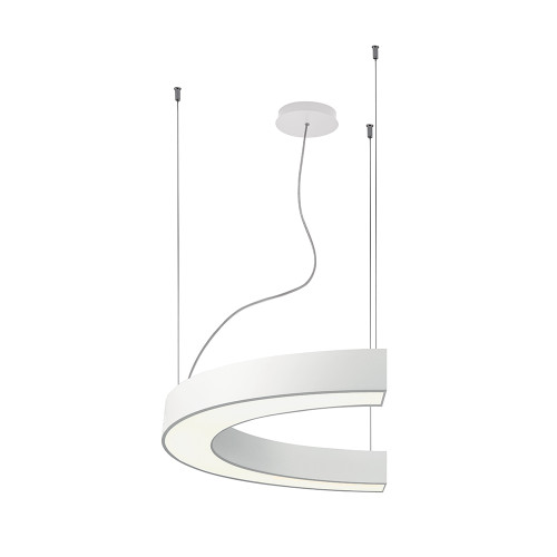 Original LED pendant lamp from the series Semi, made of white colour metal base and hanging metal body in a semicircular shape with opal plastic diffuser and built-in 58W, 4000K LED. The body has a dimmable Dali driver. Modern solution for the quality and comfortable lighting of your living room, dining room, office, hotel and restaurant.