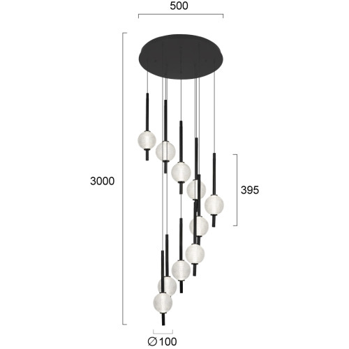Dimensions: Height: 395-3000mm, Diameter: 500mm, Diameter of the bodies: 100mm