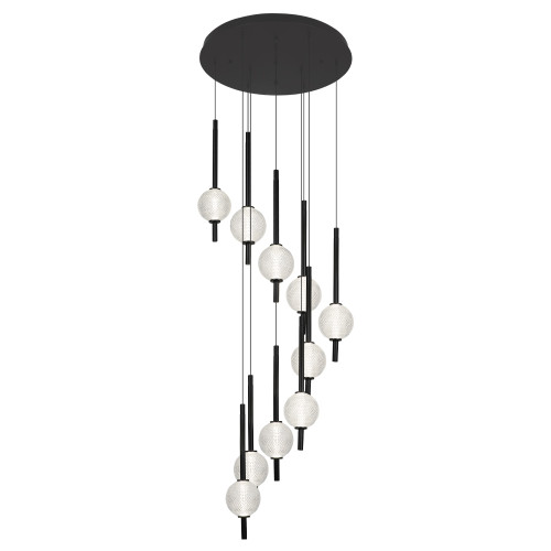 Original LED pendant lamp from the series Abeona, made of black colour metal base and hanging black metal bodies with transparent glass diffusers in spherical shape and built-in 37W, 4000K LED. Stylish solution for comfortable lighting in your living room, dining room, bedroom, office, hotel or restaurant.