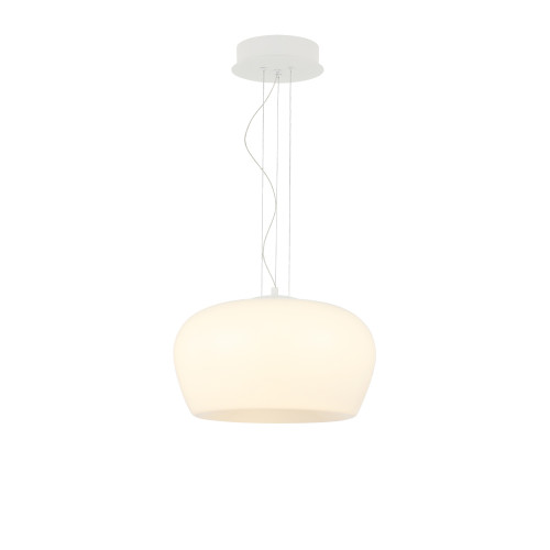 Stylish LED pendant lamp from the series Nadia, made of a white colour metal base and white glass shade with a built-in 20W, 3000K LED. An original proposal for comfortable lighting in your living room, dining room, hotel and restaurant.