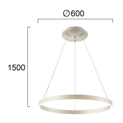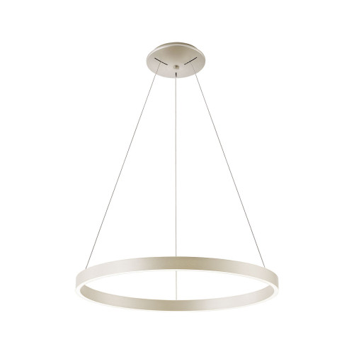 Elegant LED pendant lamp from the series Saturn, made of a silver colour round base and a metal body in the shape of a ring with double-sided light diffusion and a built-in 48W LED with the ability to change the colour temperature via a switch from 3000K to 4000K. The body has a dimmable driver. Modern solution for the interior lighting of your home, office, hotel and restaurant.