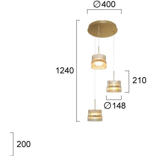 Dimensions: Height: 210-1240mm, Diameter: 400mm, Diameter of the shades: 148mm