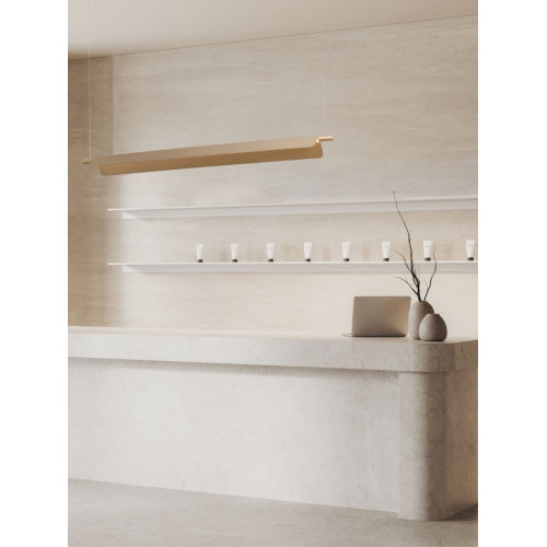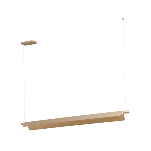 Modern LED pendant lamp with functional design, made of brushed gold colour metal base with cylindrical aluminium body and movable aluminium light deflectors with acrylic diffuser and built-in 22W LED with the ability to select the colour temperature: 3000K/4000K/5700K and a touch dimmer switch. Stylish lamp, suitable for the original and comfortable lighting of your living room, dining room, office, hotel and restaurant.