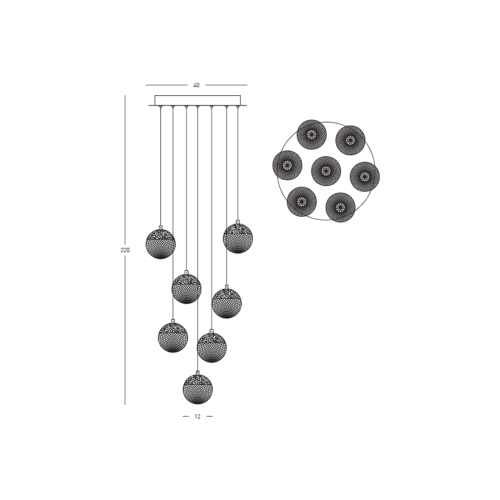Dimensions: Height: 2200mm, Diameter: 430mm, Diameter of the shades: 120mm