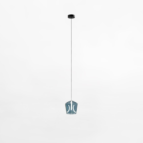 Original LED pendant lamp from the series Colore, made of a black colour metal base and a polygonal blue colour glass shade with a built-in 6W 3000K LED. Modern solution for comfortable lighting of your living room, dining room, bedroom, hotel or restaurant.