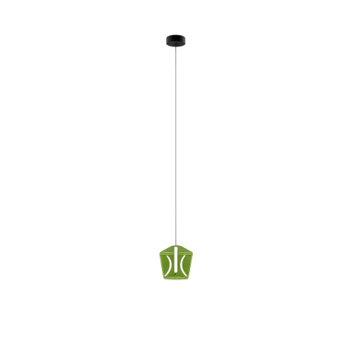 Original LED pendant lamp from the series Colore, made of a black colour metal base and a polygonal green colour glass shade with a built-in 6W 3000K LED. Modern solution for comfortable lighting of your living room, dining room, bedroom, hotel or restaurant.