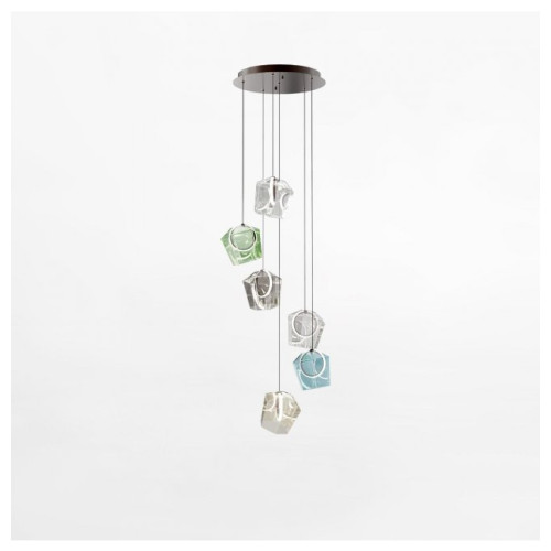 Original LED pendant lamp from the series Colore, made of black colour metal base and six polygonal glass shades in smoked, transparent, blue, green and amber colour with built-in 36W 3000K LED. Modern solution for comfortable lighting of your living room, dining room, bedroom, hotel or restaurant.