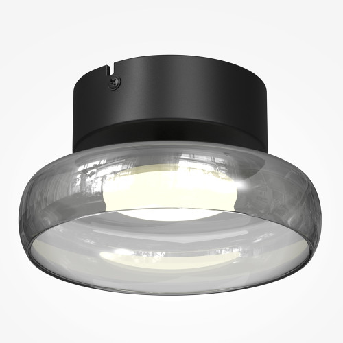 Stylish LED ceiling lamp from the series Float, made of a black colour metal base and smoked glass shade with a built-in 13W 3000K LED. Modern solution for comfortable lighting in your living room, dining room, bedroom, hotel and restaurant.