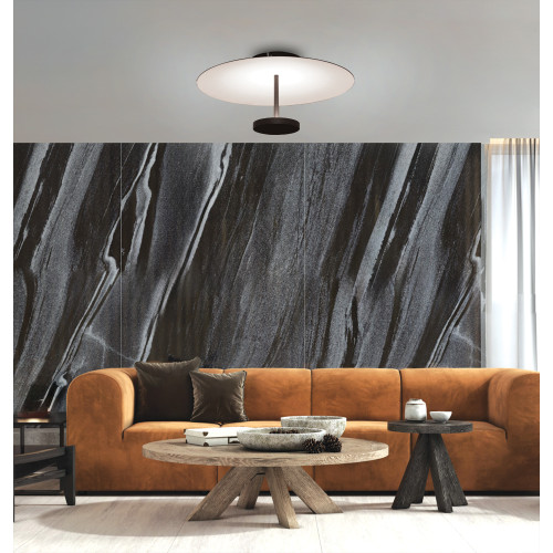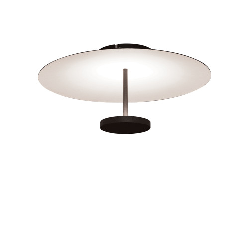 Stylish LED ceiling lamp with a minimalist design from the series Ross, made of a black colour metal body with an ultra-thin white metal diffuser in the shape of a disk and a built-in 13W, 3000K LED. Modern solution for the original lighting of your living room, dining room, bedroom, office, hotel or restaurant.