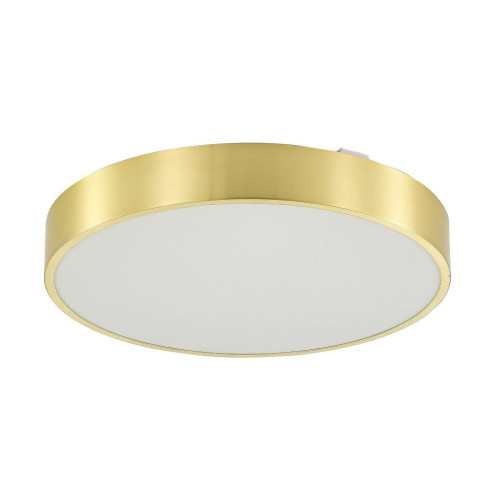 Stylish LED ceiling lamp from the series Nadi, made of a brass colour round metal body and a white plastic diffuser with a built-in 50W LED and the ability to choose the colour temperature: 3000K/6000K. Modern lamp with a high degree of ingress protection: IP44, suitable for comfortable lighting of your bathroom and wet room.