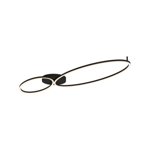 Stylish LED ceiling lamp with an original design, made of a matt black colour round metal base and two elliptical aluminium bodies with white acrylic diffusers and a built-in 69W, 3000K LED. The body has a dimmable TRIAC driver. An excellent solution for the interior lighting of your living room, dining room, bedroom, office, hotel and restaurant.