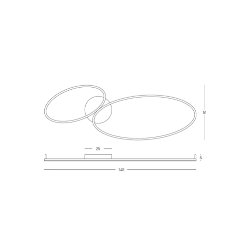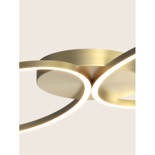 Stylish LED ceiling lamp with an original design, made of a matt gold colour round metal base and two elliptical aluminium bodies with white acrylic diffusers and a built-in 69W, 3000K LED. The body has a dimmable TRIAC driver. An excellent solution for the interior lighting of your living room, dining room, bedroom, office, hotel and restaurant.