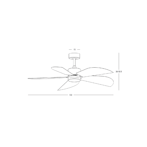 Technical specification: Diameter: 1320mm, Height: 380-505mm, 5 pcs. blades, 6 reversible speeds, DC Motor: 45W, function: Summer - Winter, noise level: 23 dB