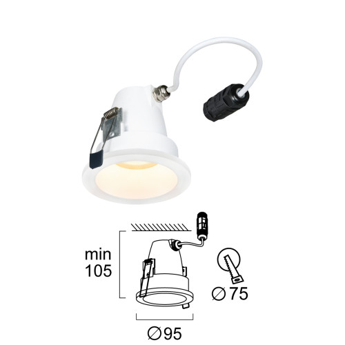 Dimensions: Depth: 105mm, Diameter: 95mm, Recessed size: 75mm