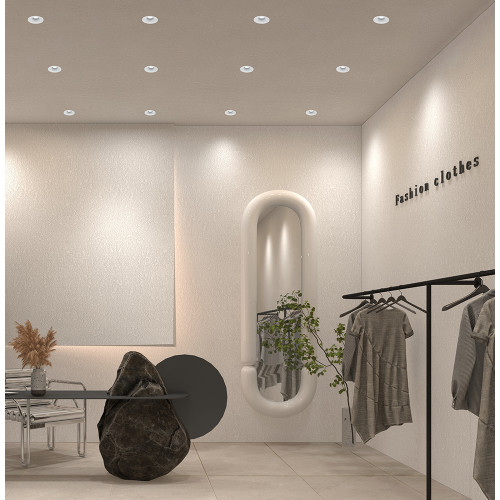 Stylish and modern round led downlight made of white metal body with white opal plastic diffuser wit..