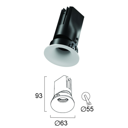 Dimensions: Diameter: 63mm, Depth: 93mm, Recessed diameter: 55mm