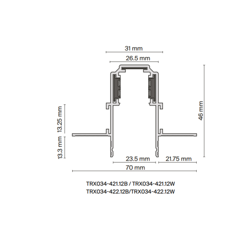Stylish and modern magnetic track for recessed mounting from series Exility, made of white colour rectangular aluminium body with length: 2000mm. Suitable for interior lighting and office lighting.