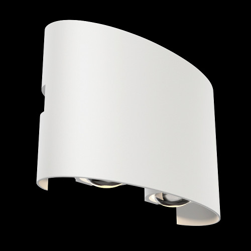 Modern LED facade wall lamp from the series Strato, made of white colour elliptical metal body, resistant to corrosion, illuminated on both sides with four light beams. Original lamp with a high degree of ingress protection: IP54, suitable for decorative lighting of the facade, porch, terrace or front door in your home, villa, hotel and restaurant.