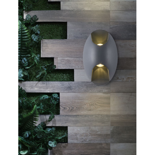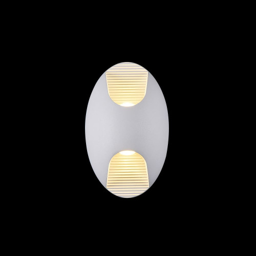 Modern LED facade wall lamp, made of white colour metal body in an oval shape with a built-in 6W, 3000K LED. Stylish lamp with a high degree of ingress protection: IP54, suitable for the comfortable lighting of the facade, front door, terrace and veranda in your home, hotel and restaurant.