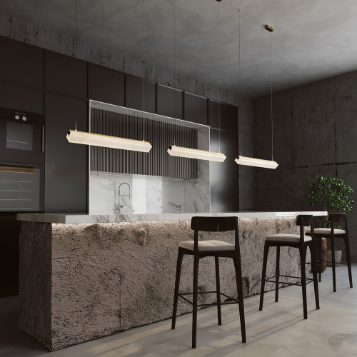 Modern LED pendant lamp from the series Tau, made of matt brass colour aluminium base and arm with w..