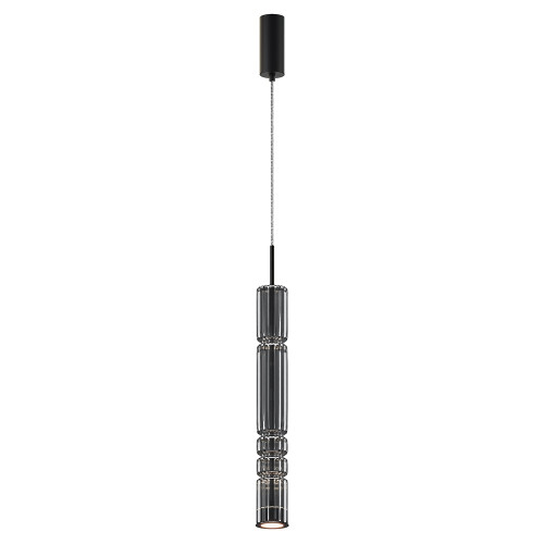 Original LED pendant lamp with a stylish design from the series Ordo, made of a black colour metal base and a cylindrical glass shade with a vertical embossed pattern in smoky colour and a built-in 12W 3000K LED. Modern lamp, suitable for quality and comfortable lighting in your dining room, kitchen, bedroom, hotel and restaurant.