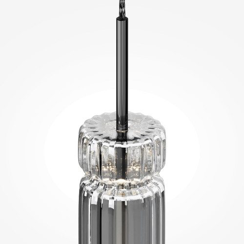Original LED pendant lamp with a stylish design from the series Ordo, made of a chrome colour metal base and a cylindrical glass shade with a vertical embossed pattern in transparent colour and a built-in 12W 3000K LED. Modern lamp, suitable for quality and comfortable lighting in your dining room, kitchen, bedroom, hotel and restaurant.