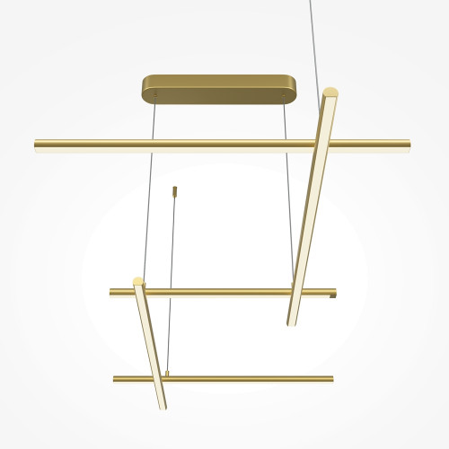 Stylish LED pendant lamp with an original design from the series Radiance, made of satin brass colour aluminium base and body of hanging aluminium frames with white silicone diffusers and built-in 50W 3000K LED. Modern proposal for comfortable lighting in your living room, dining room, bedroom, hotel, office and restaurant.