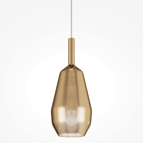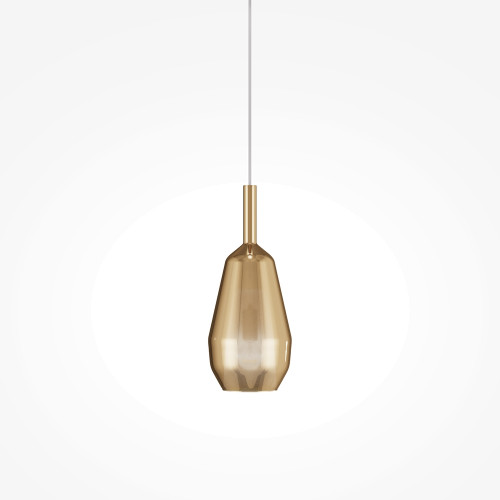 Stylish pendant lamp with a modern design from the series Duality, made of a black colour round metal base and a gold colour geometric shape glass shade with an inner diffuser made of white glass in a cone shape. Great solution for comfortable lighting in your living room, dining room, bedroom, hotel and restaurant.