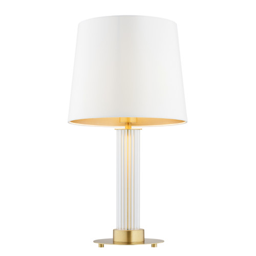 Contemporary table lamp from the series Hampton, made of brass base with a fluted transparent glass ..