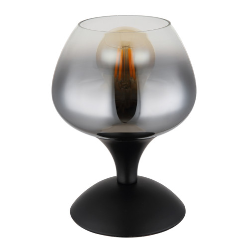 Elegant table lamp with a modern design from the series Maxy, made of a black colour metal base and dome-shaped glass shade in a smoked colour that fades to transparent. An original solution for interior lighting in your living room, dining room, bedroom, office, hotel and restaurant.