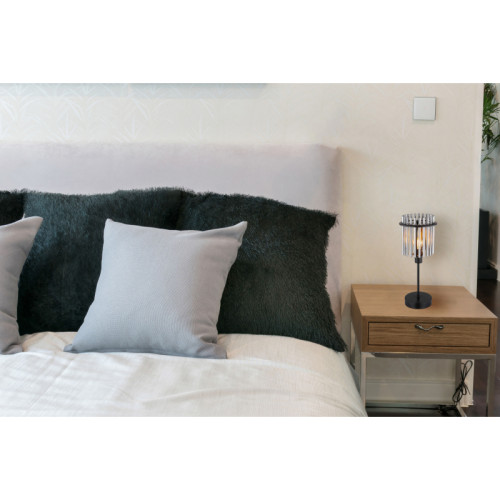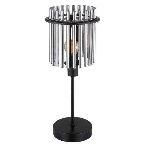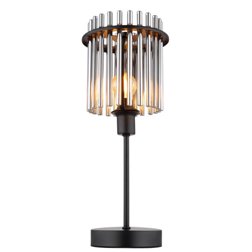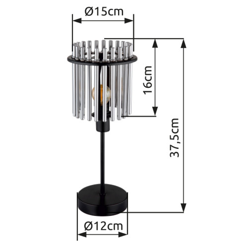 Stylish table lamp with a sophisticated design from the series Gorley, made of a matt black colour metal base and cylindrical decorative shade of smoked glass rods. Great suggestion for comfortable lighting in your living room, dining room, hotel and restaurant.