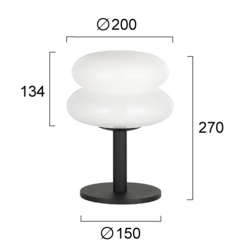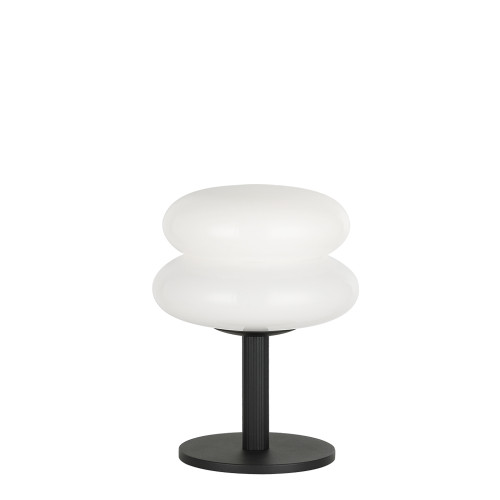 Stylish table lamp with a modern design from the series Debora, made of a black colour metal base and an opal glass shade. An original lamp, suitable for the comfortable lighting of your living room, dining room, bedroom, hotel and restaurant.