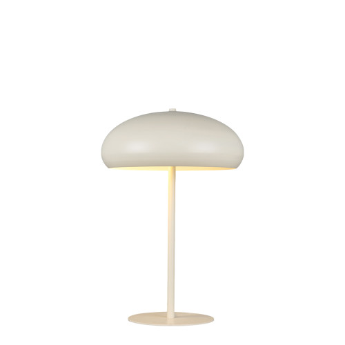 Modern table lamp from the series Cozy, made of a round metal base with arm and a dome-shaped metal shade in beige colour. An original proposal for the interior lighting of your living room, dining room, bedroom, hotel and restaurant.