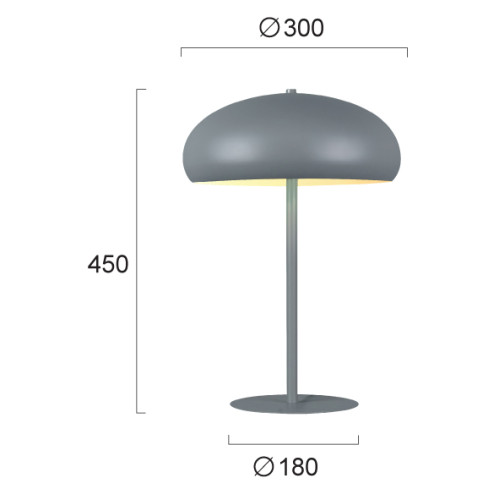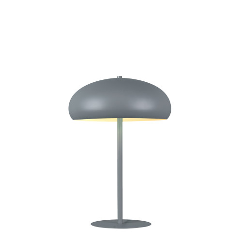 Modern table lamp from the series Cozy, made of a round metal base with arm and a dome-shaped metal shade in grey colour. An original proposal for the interior lighting of your living room, dining room, bedroom, hotel and restaurant.